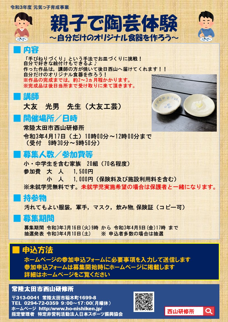 本日より、「親子で陶芸体験」の参加申込受付を開始しました🤗