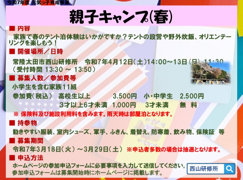 2025/3/18 『親子キャンプ🌸』募集開始のお知らせ🌸